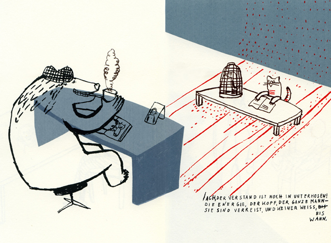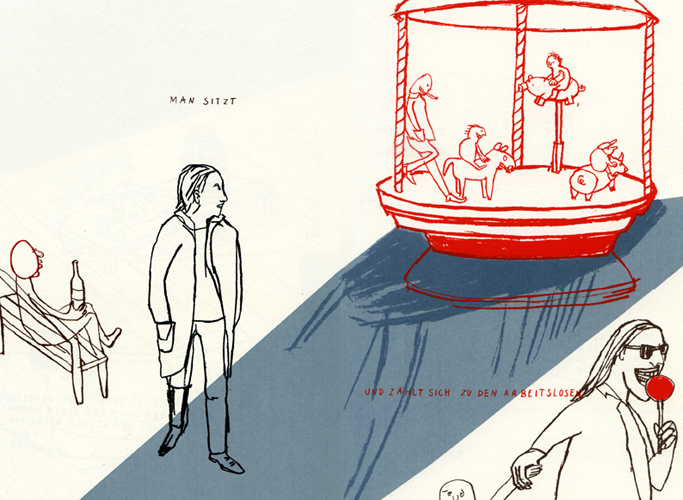 6-farbiger Siebdruck zu einem Text von Erich Kästner,